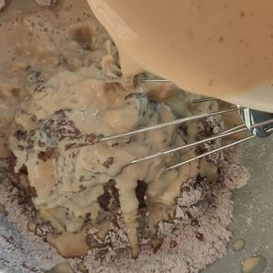 • Step 4 ‌-‌Add the milk mix and mix well using a beater. Grease a microwave safe bowl with some oil. Pour the batter in this microwave safe bowl..